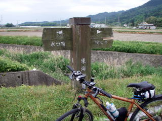 坂道を下り「山中の一里塚」お腹が減って「ハンガーノック」状態。下りで良かった。そのまま「道の駅 あいの土山」へなだれ込む。食堂でうどんとどんぶり物のセットで含水炭素を取り込む。冷たい水も大量に摂取。「かにが坂飴」を買っていると空が怪しくなってきて今日の宿を草津に決める。アチコチ、ホテルに電話を入れるが満室が多い。やっと決めて少しでも早くと新道を下り続ける。 |